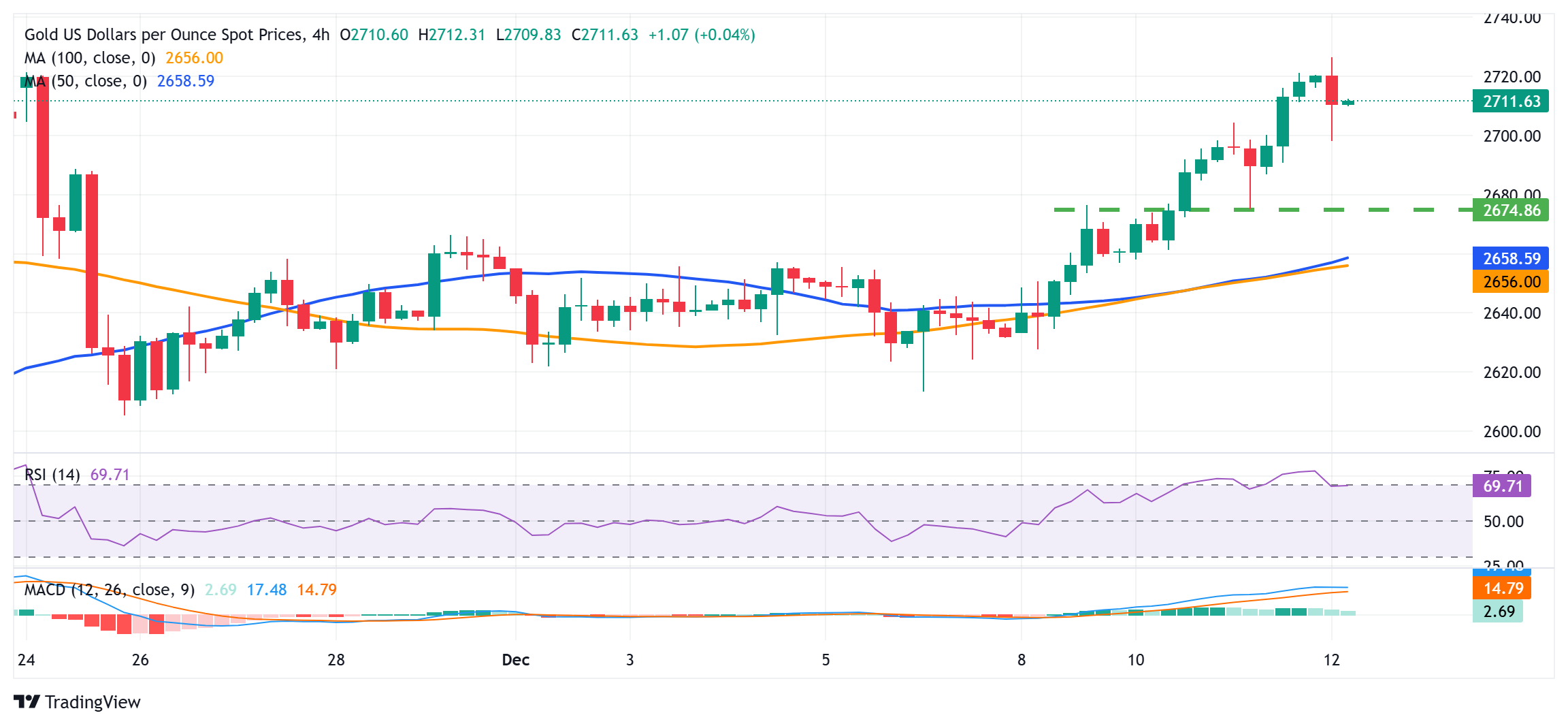 金价处在隔夜低点 2675 美元附近区域上方,多头占据主导