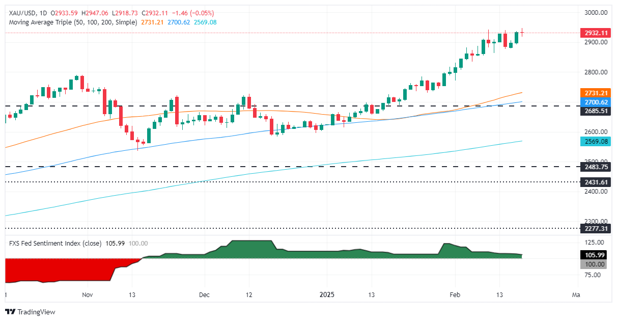 金价保持上行偏向,尽管在过去七天内未能突破2950美元的障碍。价格走势似乎过于延伸,进一步加剧了买方失去动力的情况。